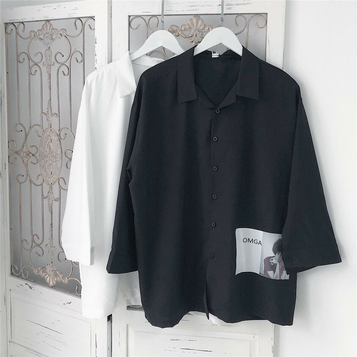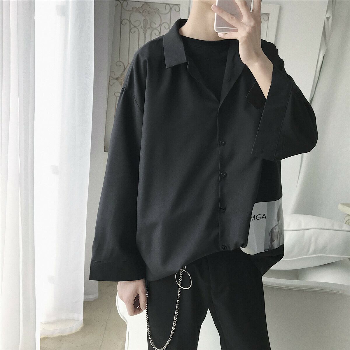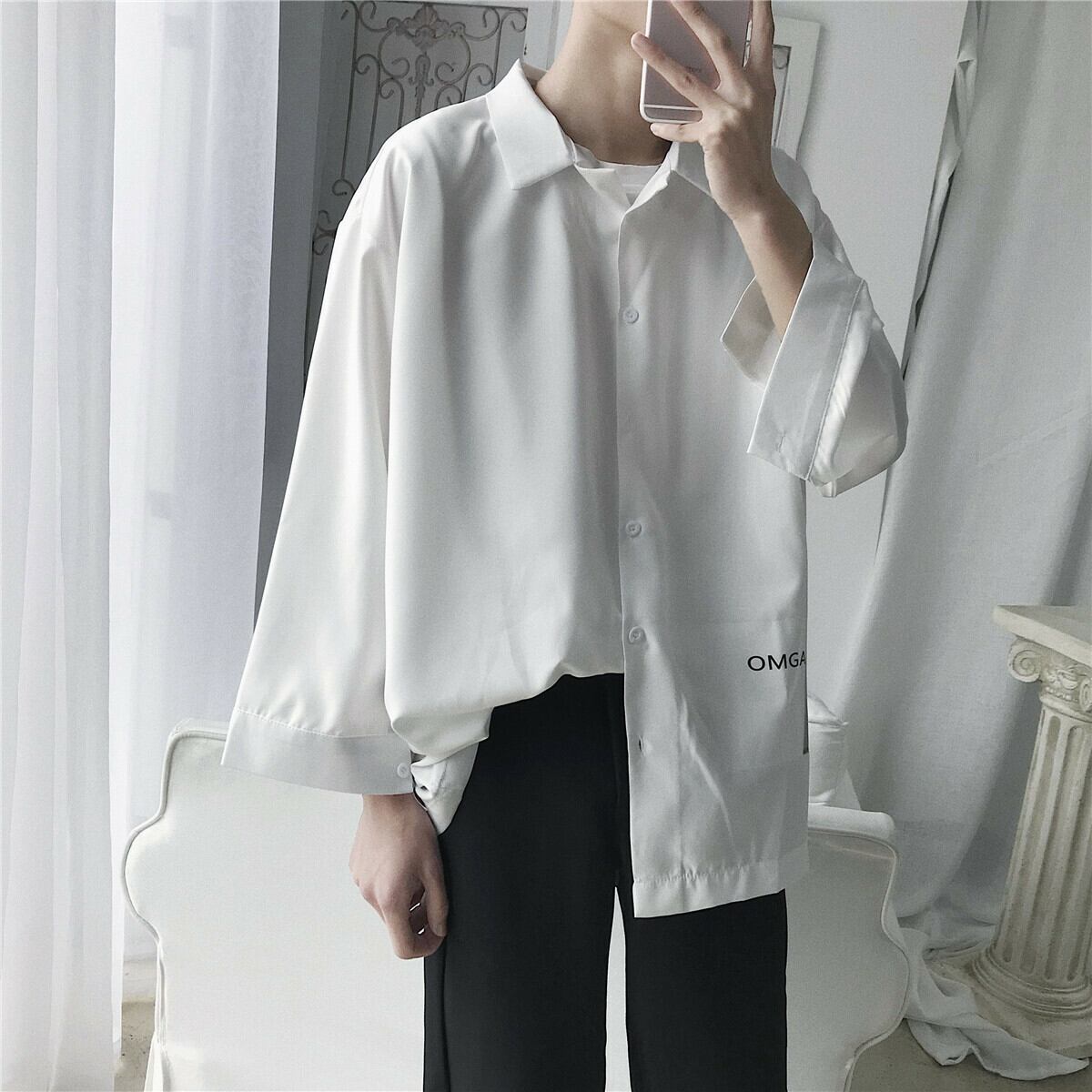 【韓国メンズファッション】メンズ シンプル おしゃれ シャツ 無地 カジュアル ストリート 大きいサイズ BW007