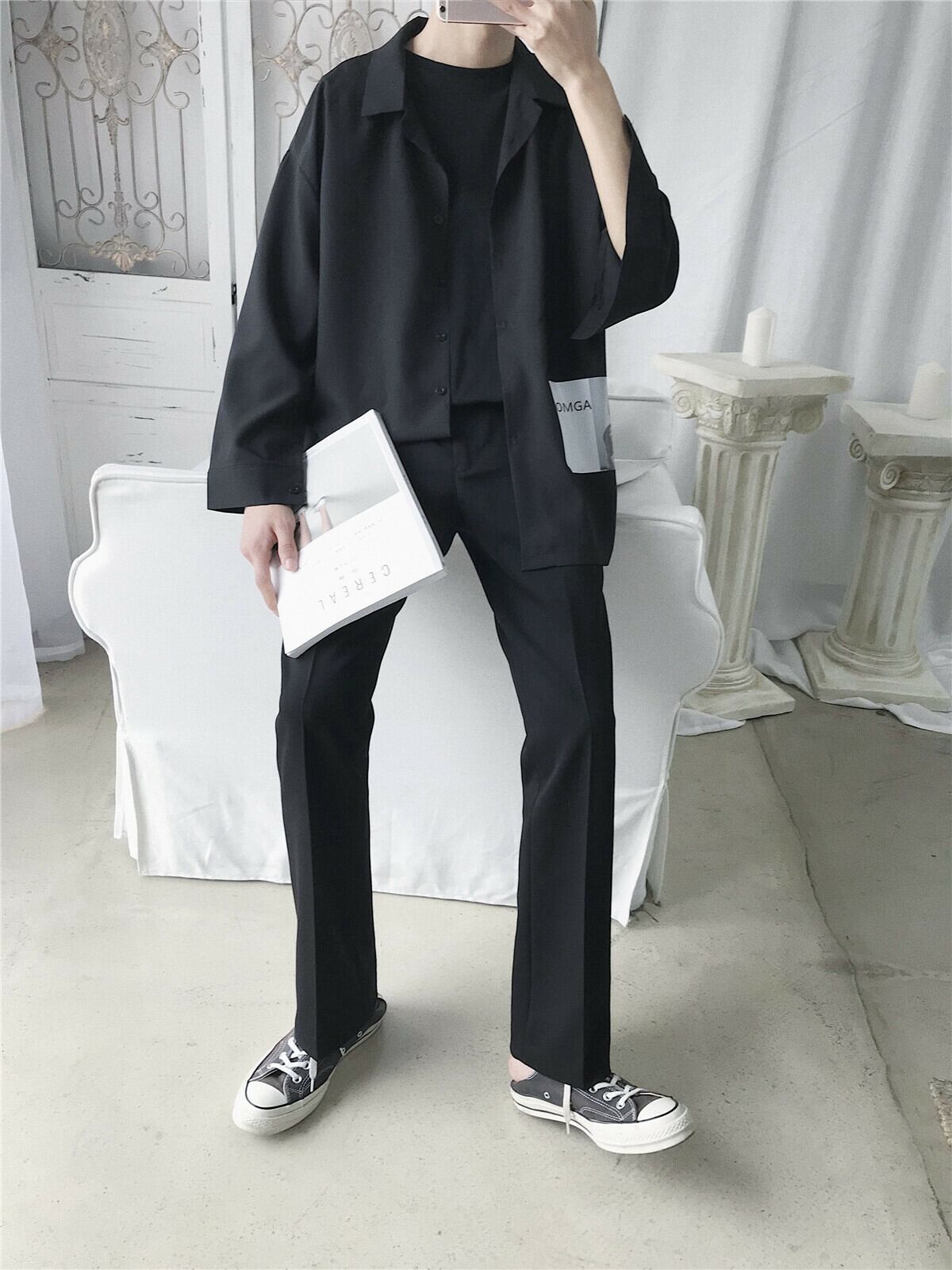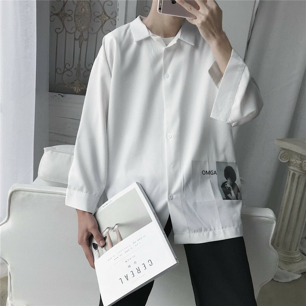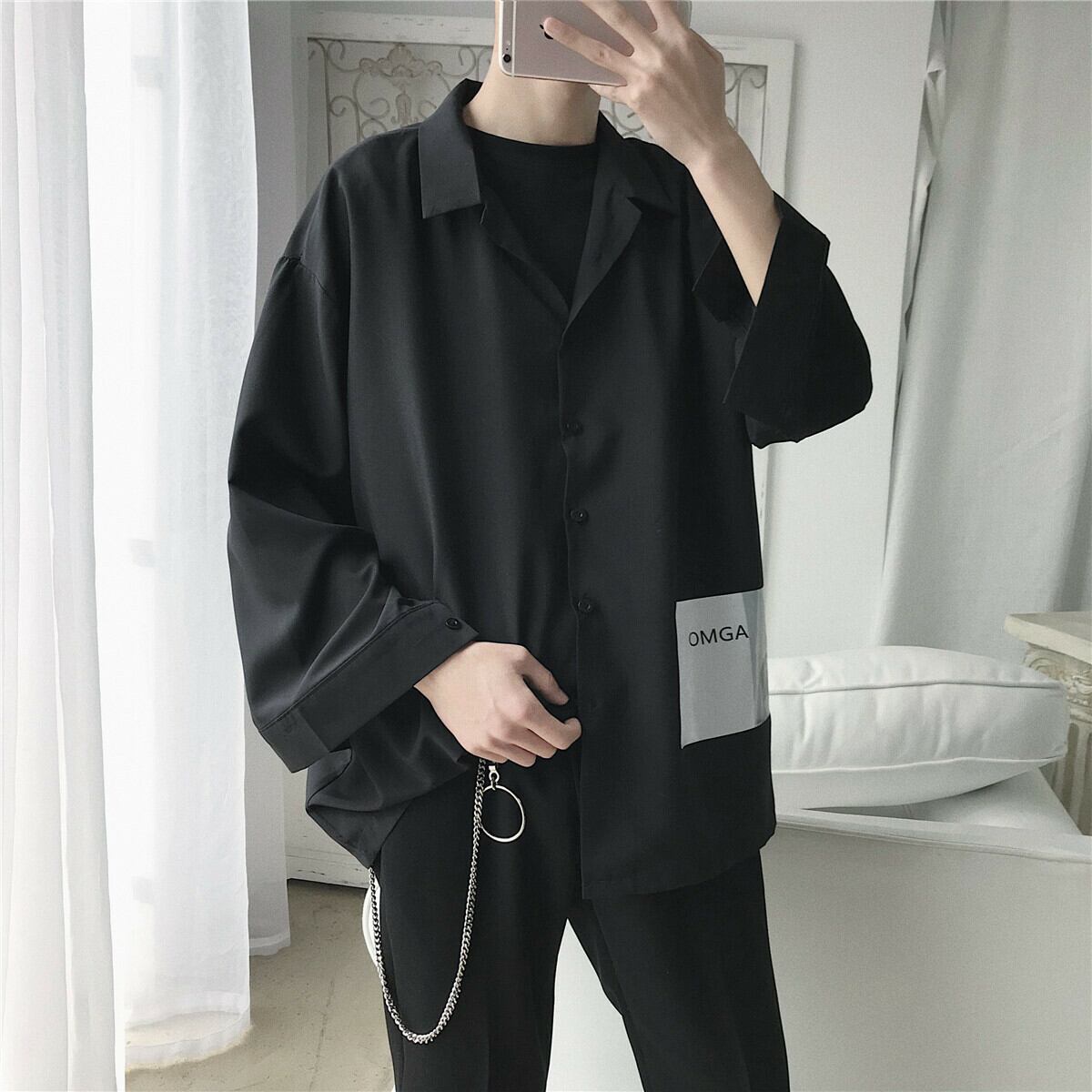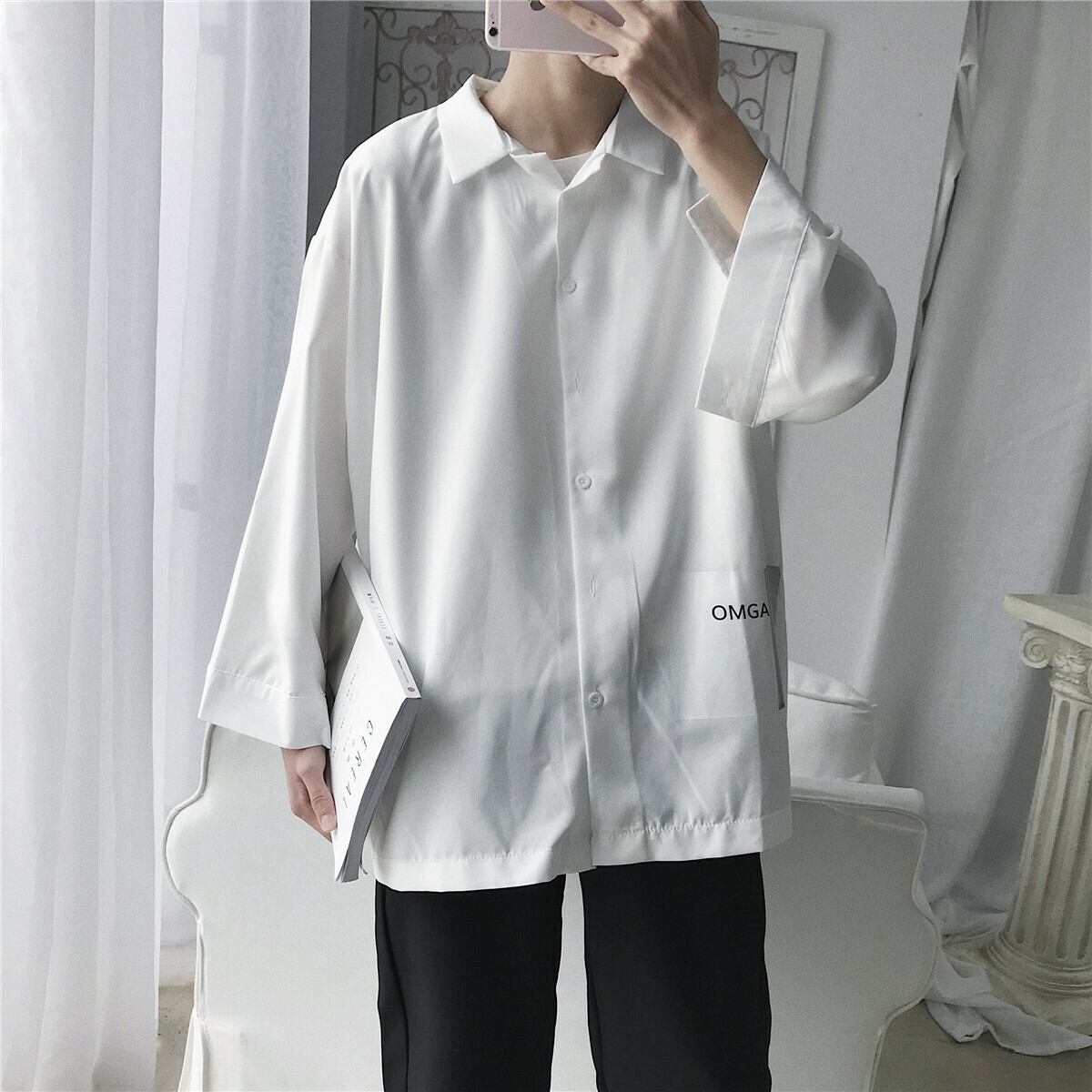 【韓国メンズファッション】メンズ シンプル おしゃれ シャツ 無地 カジュアル ストリート 大きいサイズ BW007
