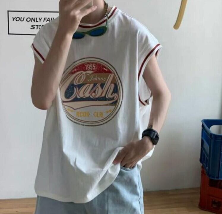 【 @ shu._1203_ 様 着用 】 BW589 ロゴプリント ノースリーブ タンクトップ ゆったり ストリート カジュアル トップス ユニセックス