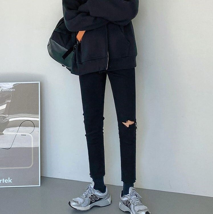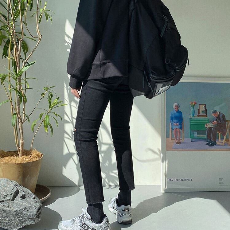 【韓国メンズファッション】 BW646 ダメージ ジーンズ Gパン スキニーパンツ ブラックジーンズ