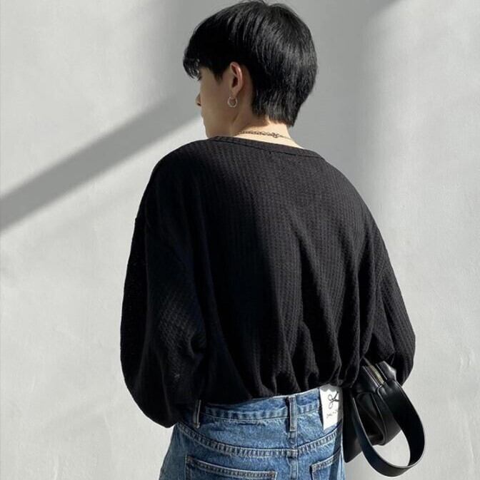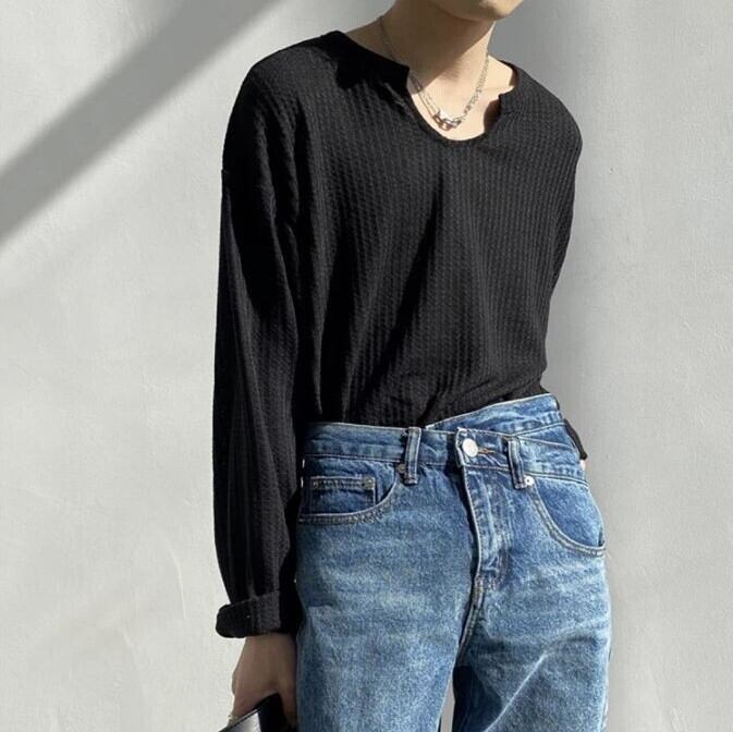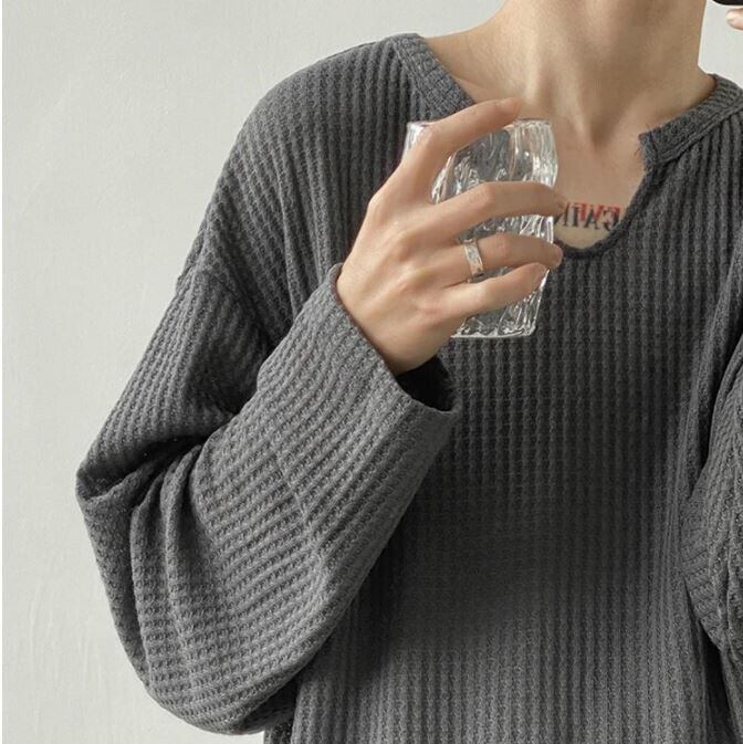 【韓国メンズファッション】BW664 メンズ キーネック ワッフル ロンT オーバーサイズ カジュアルシャツ