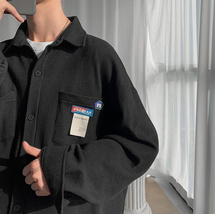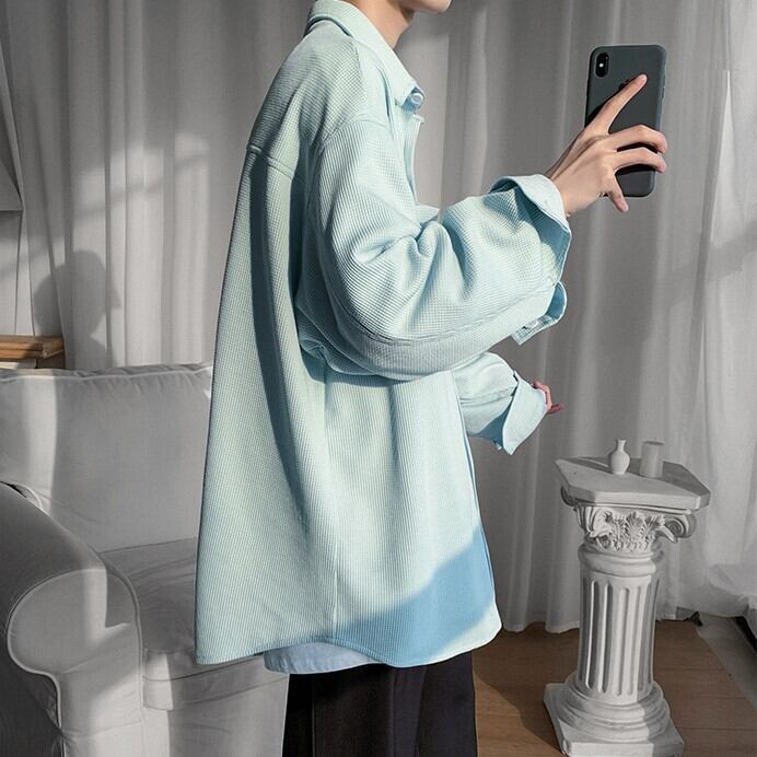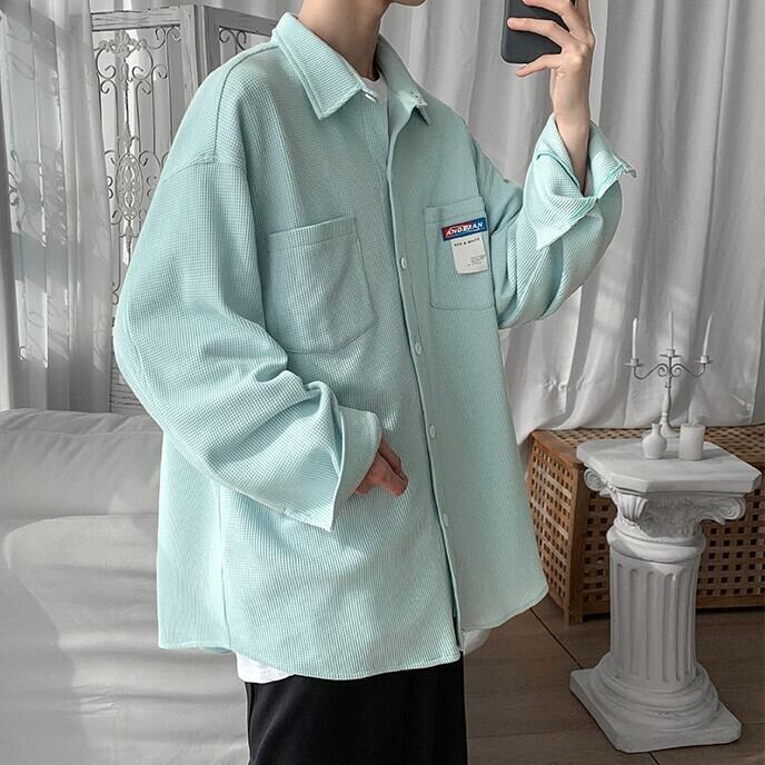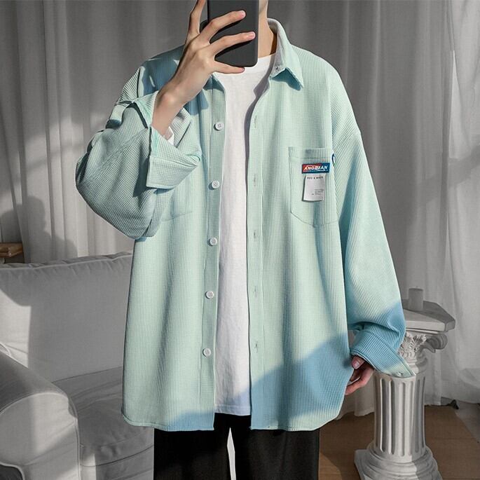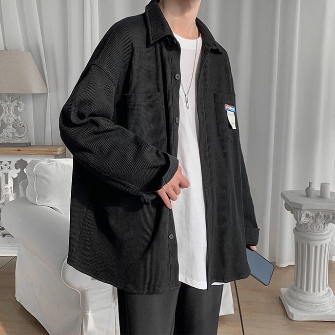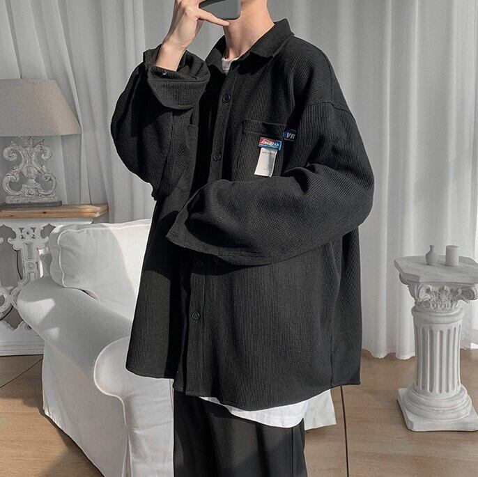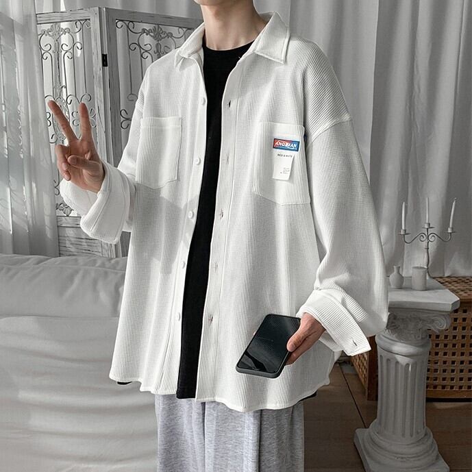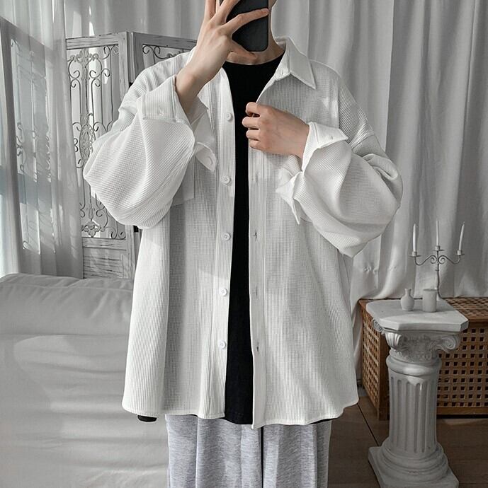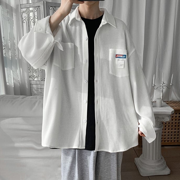 【韓国メンズファッション】 BW741 メンズ ワッフル デザインシャツ オーバーサイズ 長袖シャツ おしゃれ カジュアル