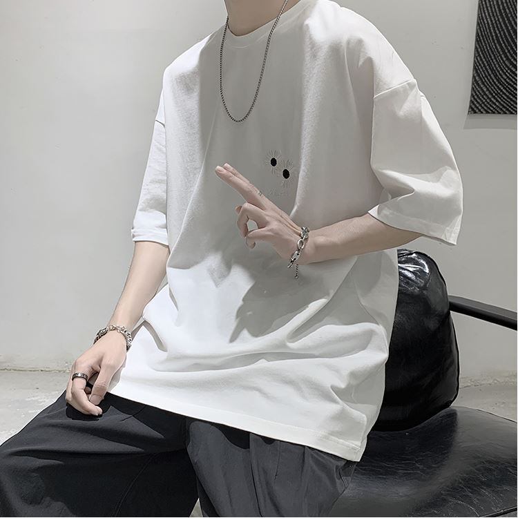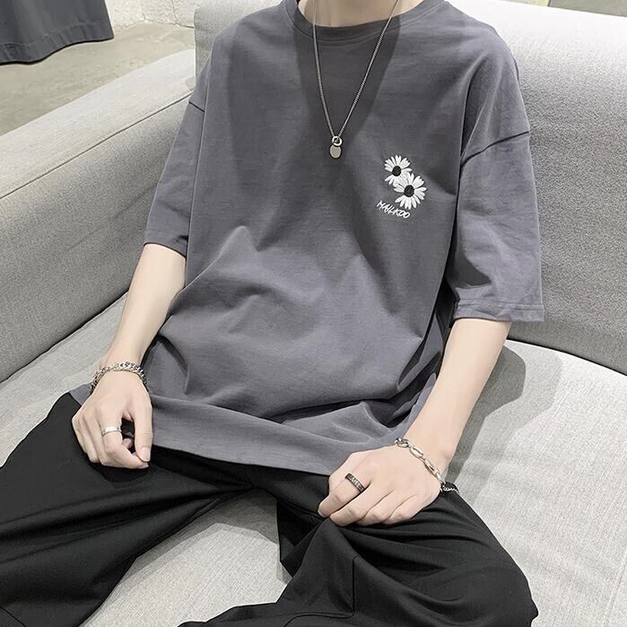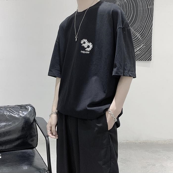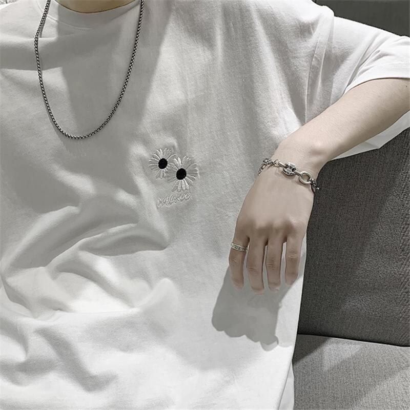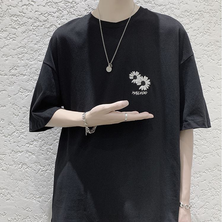 【韓国メンズファッション】BW822 ユニセックス フローラル刺しゅう 半袖 Tシャツ シンプル カジュアル