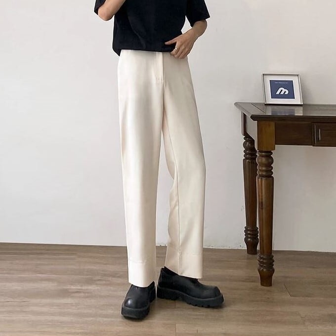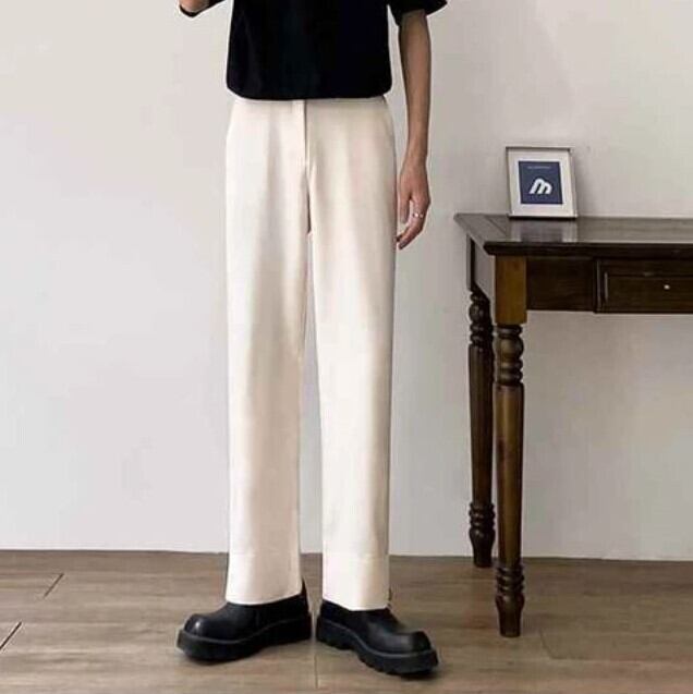 【韓国メンズファッション】BW1113 メンズ サイドスリット ワイドレッグパンツ 無地 ゆったり カジュアル