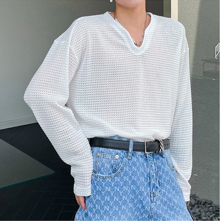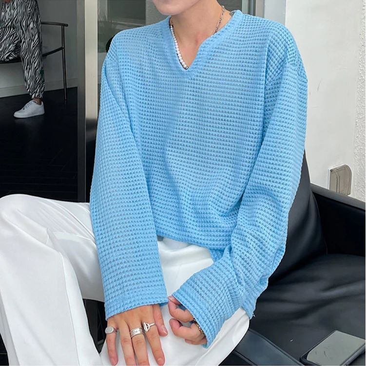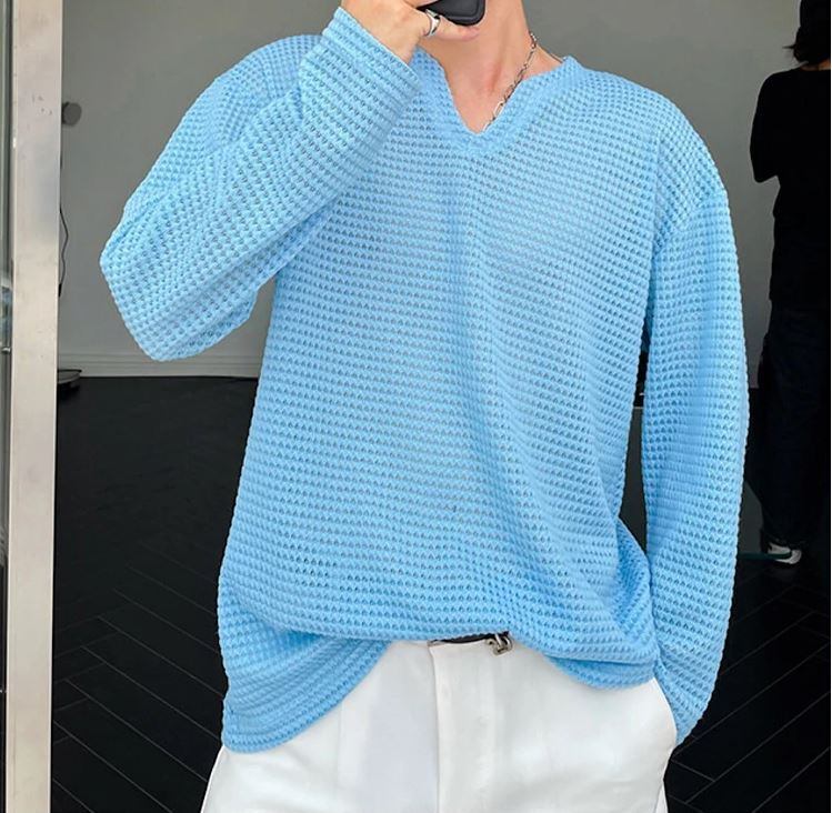 【韓国メンズファッション】BW1197 メンズ Uネック プルオーバー 長袖 無地 ゆったり カジュアル