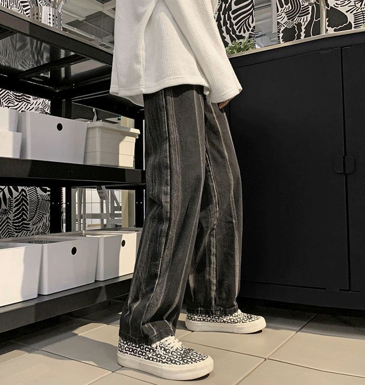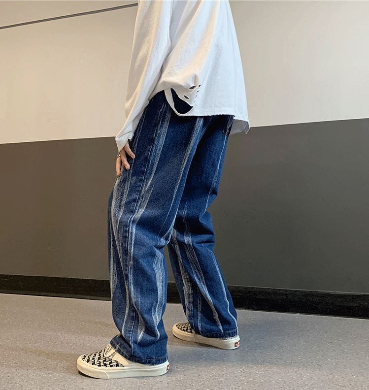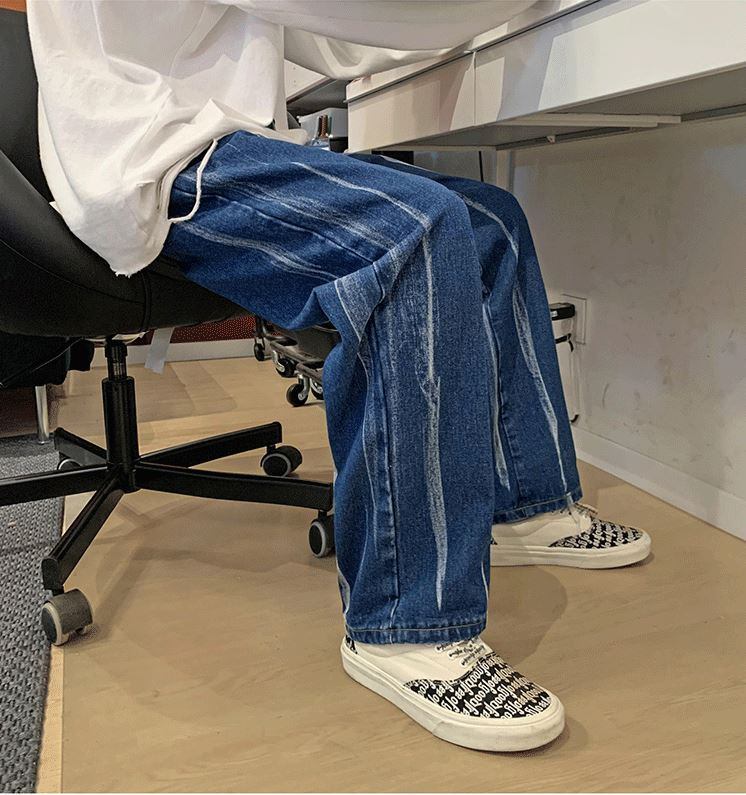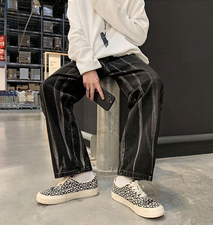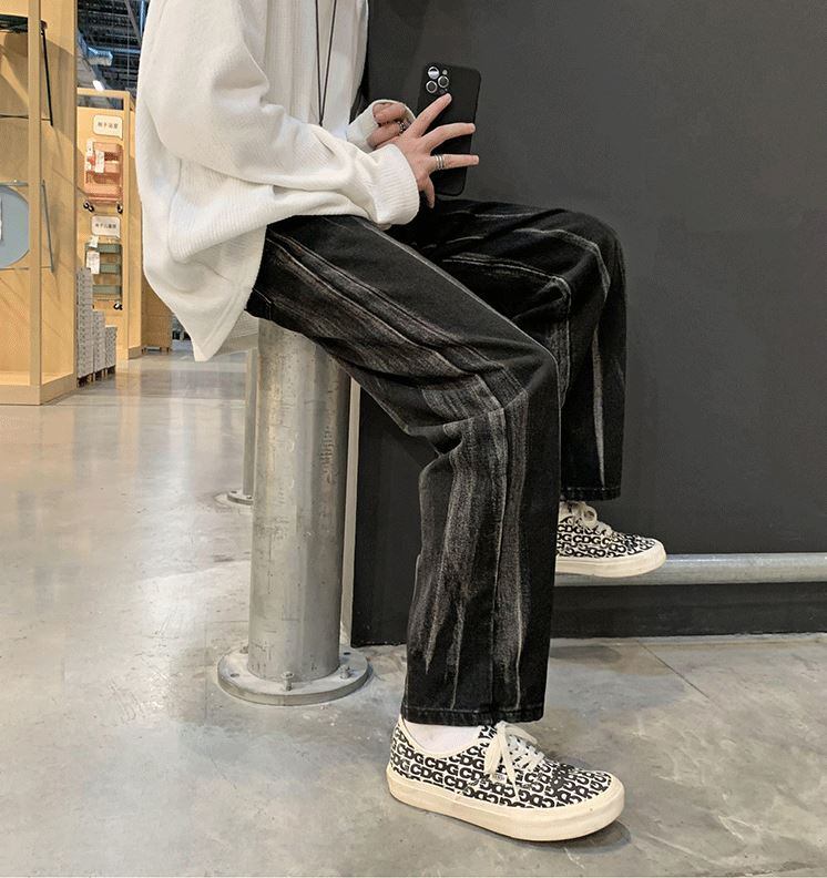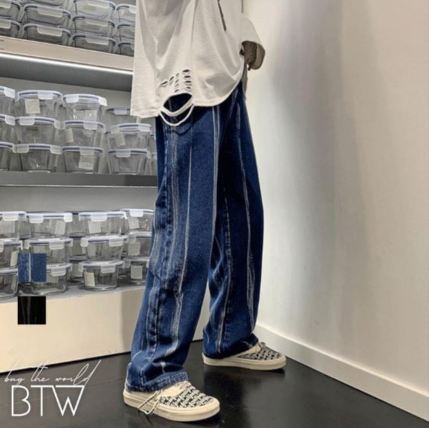 【韓国メンズファッション】BW1205 メンズ 絞り染め イレギュラー ジーンズ ストレート ワイドレッグパンツ カジュアル