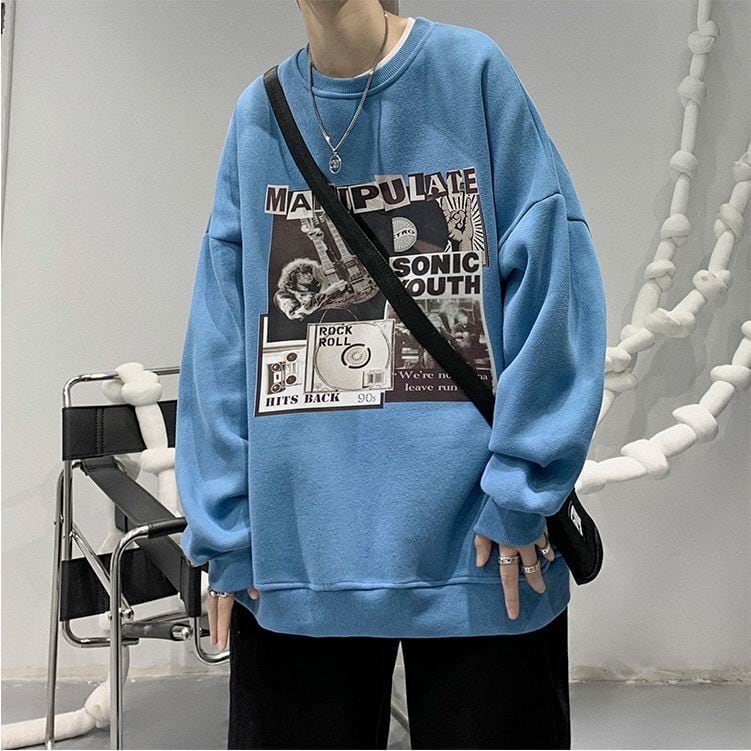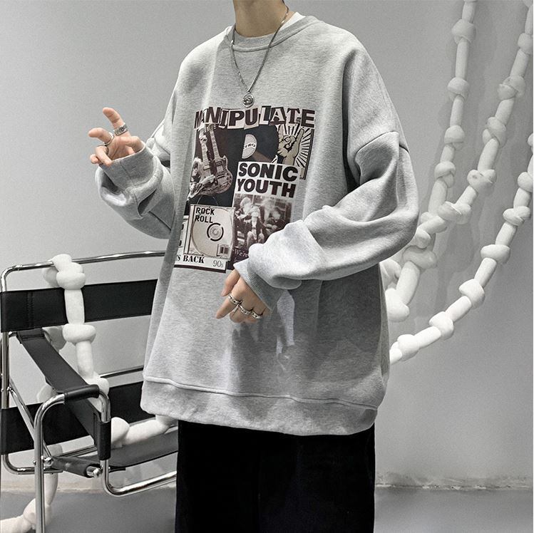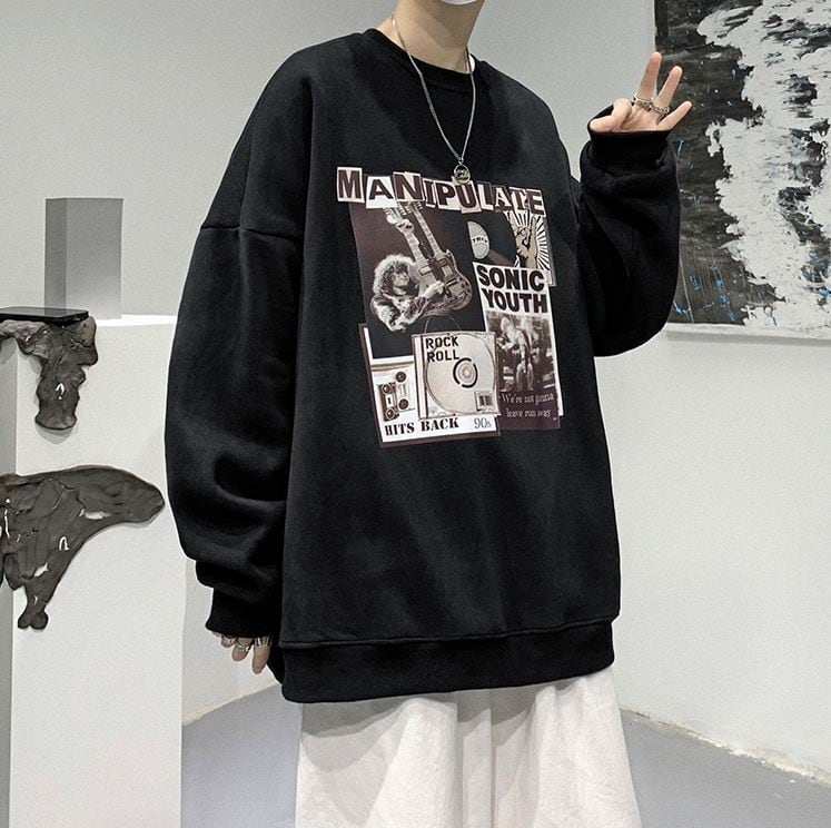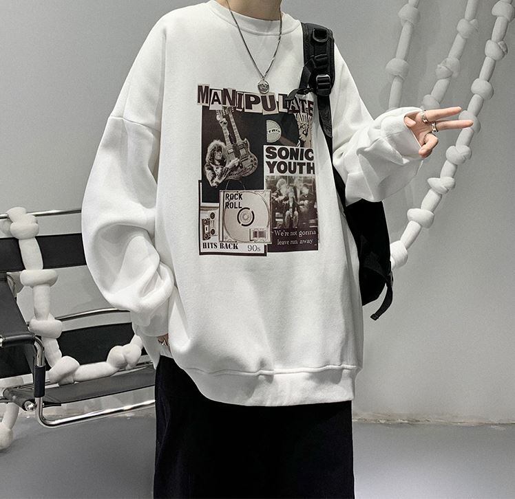 【韓国メンズファッション】BW1284 ユニセックス ヒップホッププリント 長袖 スエットトレーナー オーバーサイズ カジュアル