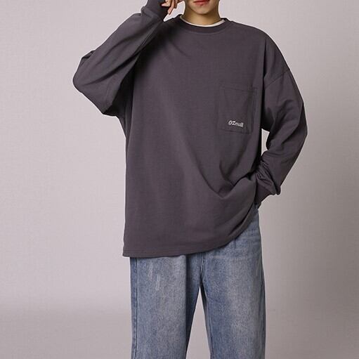 【韓国メンズファッション】BW1287 メンズ 長袖 Tシャツ 無地 ラウンドネック オーバーサイズ カジュアル