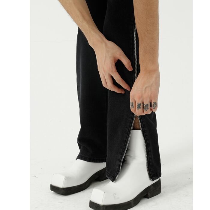 【 @imhi.0310 様 着用 】 メンズ デニムジーンズ ストレートパンツ スリット ジッパー カジュアル BW1301