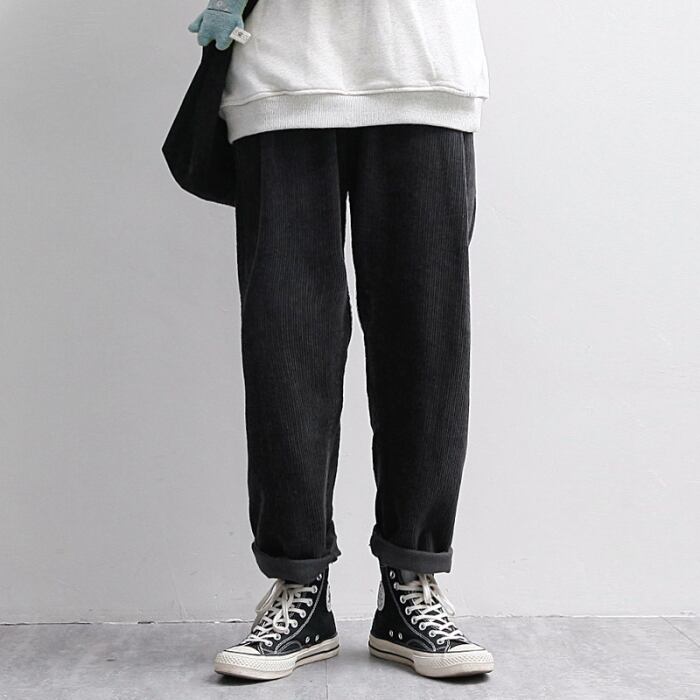 【韓国メンズファッション】 メンズ パンツ 無地 ルーズ ゆったり コーデュロイ ワイド カジュアル BW1306