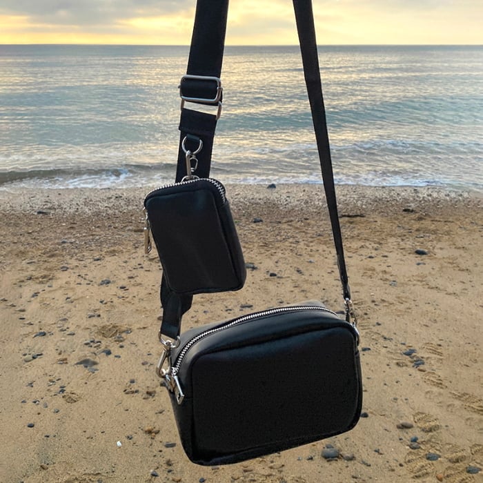【韓国メンズファッション】 メンズ バッグ ショルダーバッグ ブラック ポーチ付き 無地 カジュアル BW1544