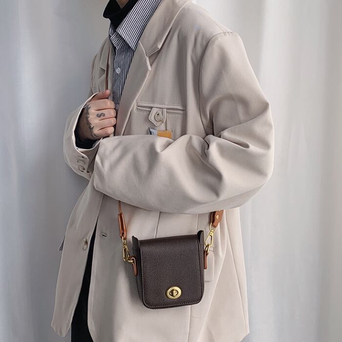 【韓国メンズファッション】メンズ バッグ ショルダーバッグ 無地 シンプル PU カジュアル BW1671