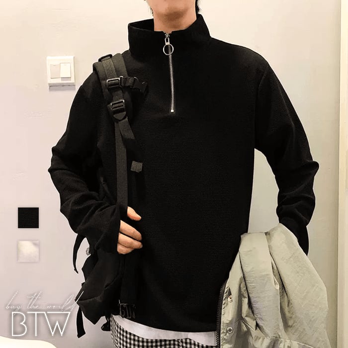 【韓国メンズファッション】トップス スウェット ジッパー 長袖 無地 カジュアル BW1676