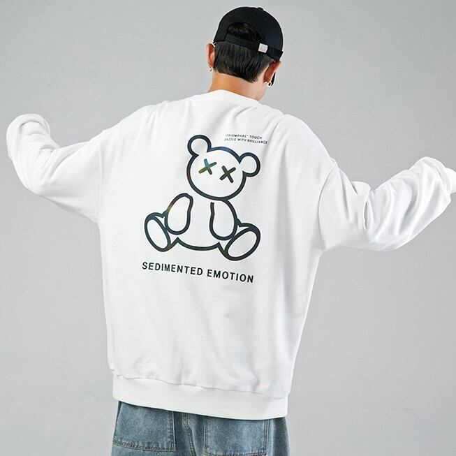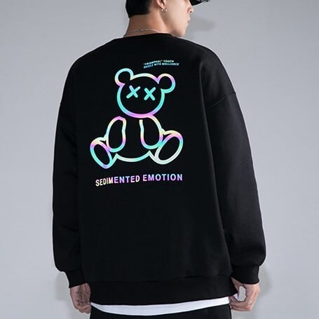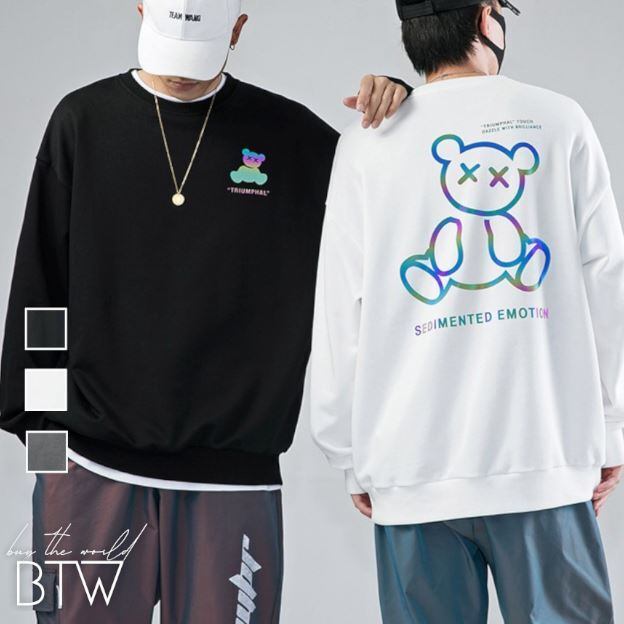 【韓国メンズファッション】メンズ 長袖 バックプリント スエット 反射カラフルプリント 無地 オーバーサイズ カジュアル BW1740