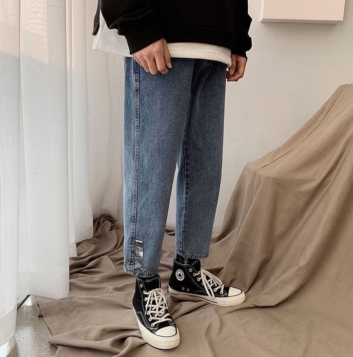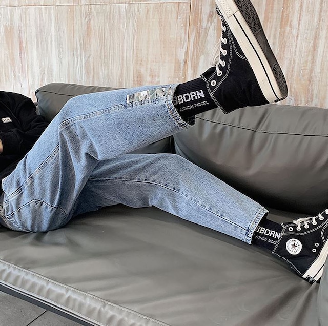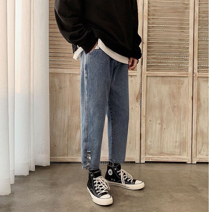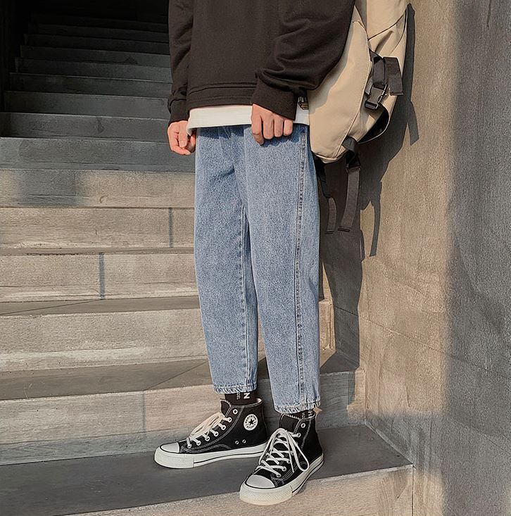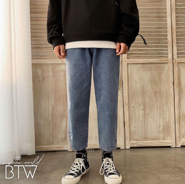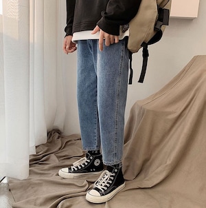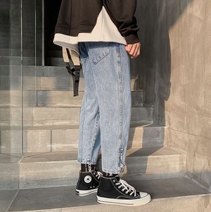 【韓国メンズファッション】デニム ハーランパンツ 無地 クロップド丈 ゆったり カジュアル BW1777