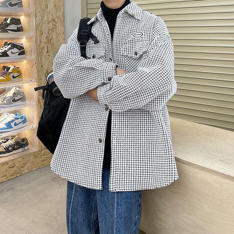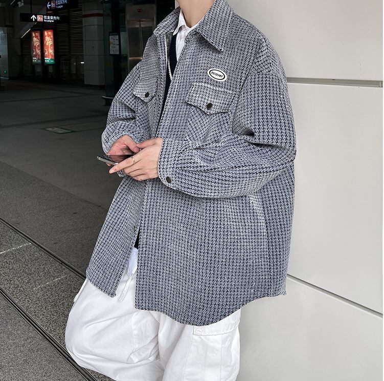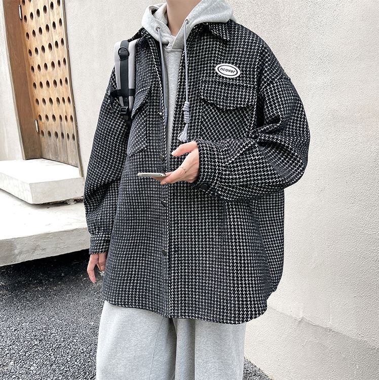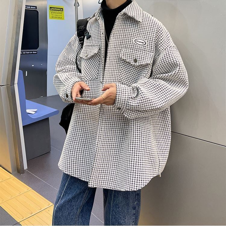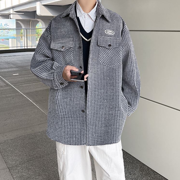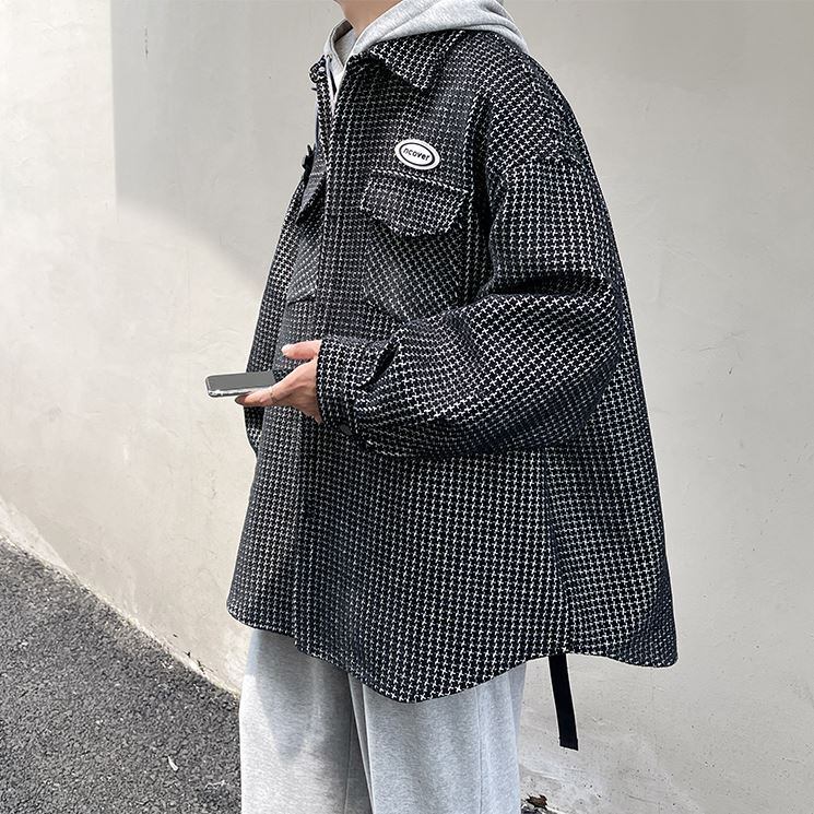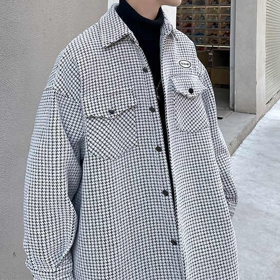 【韓国メンズファッション】チェック柄 長袖 シャツジャケット ダブルポケット ゆったり アウター カジュア BW1781