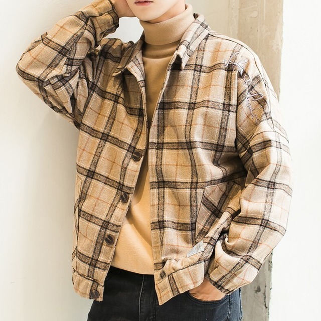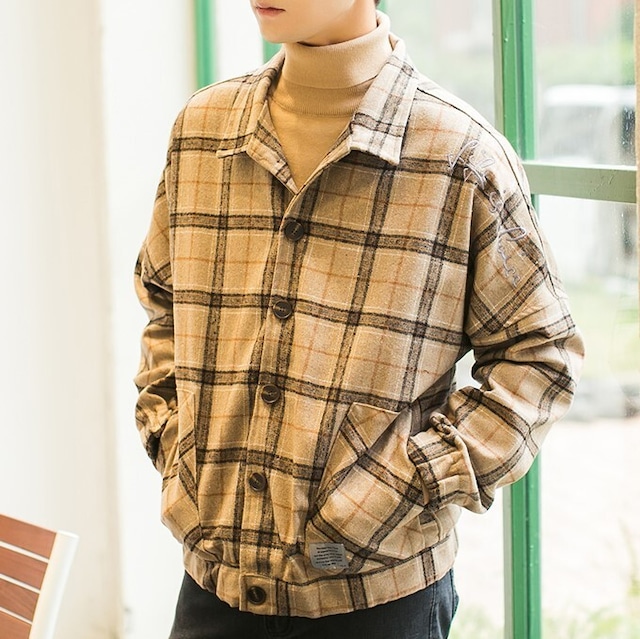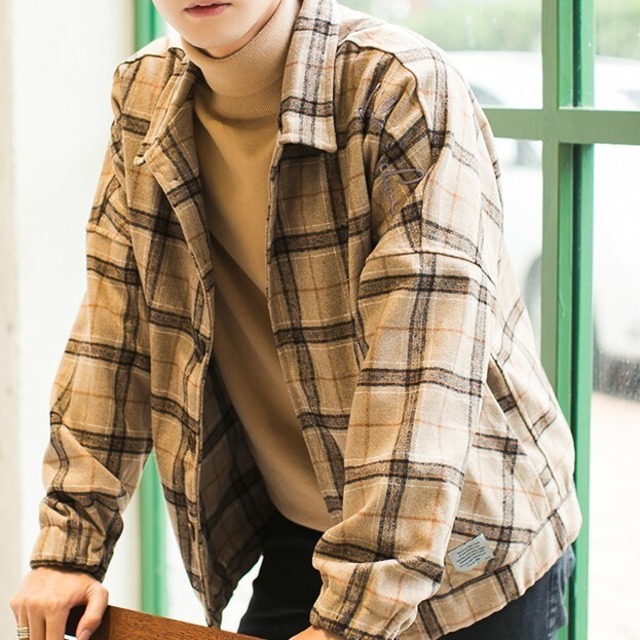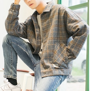 【韓国メンズファッション】ジャケット シャツ チェック柄 長袖 スウィングトップ ブルゾン ルーズ カジュアル BW1807