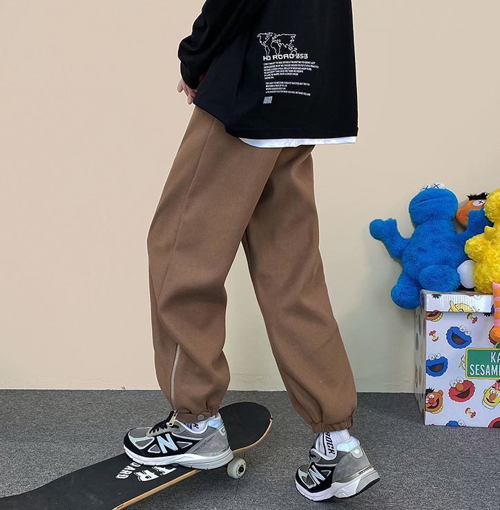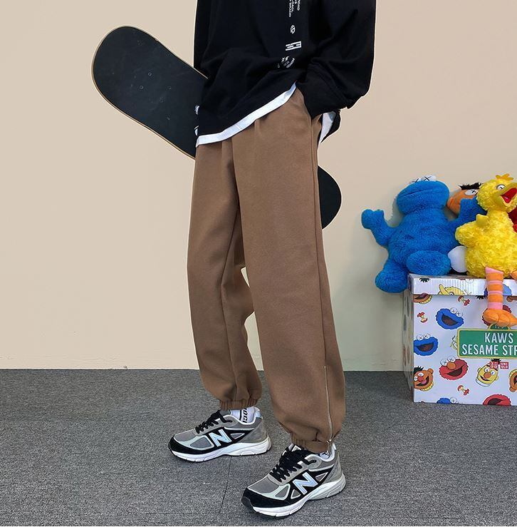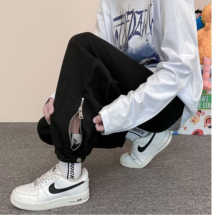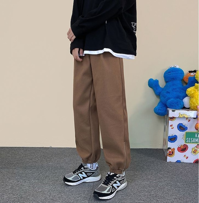 【韓国メンズファッション】メンズ サイドジッパーパンツ 無地 ルーズレギンスパンツ ジョガータイプ カジュアル BW1823