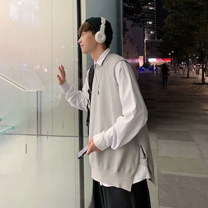横にスリットのあるベスト。