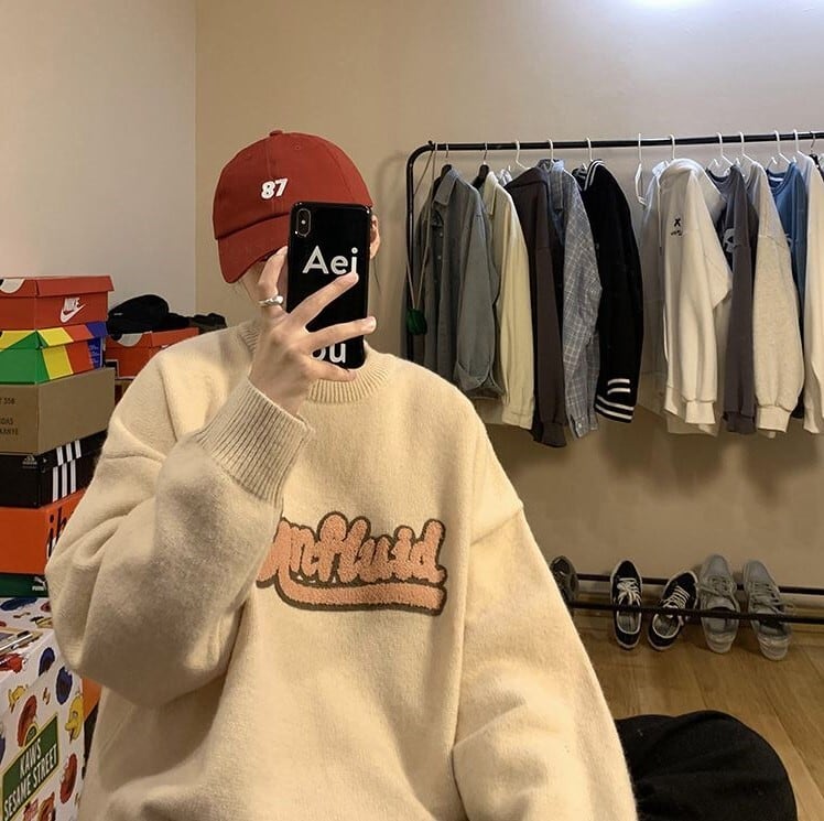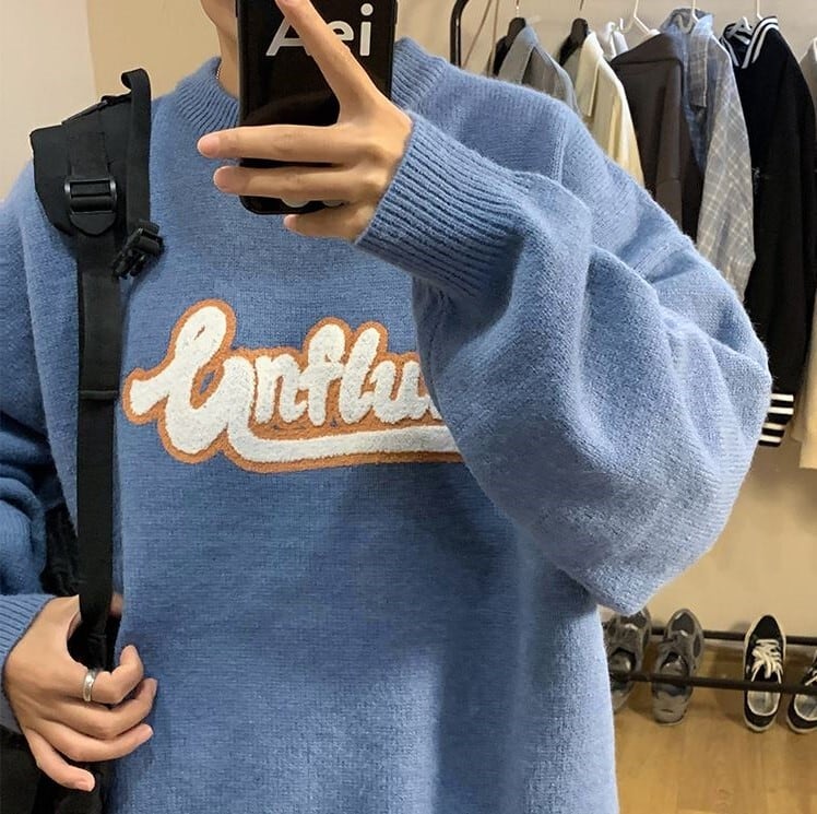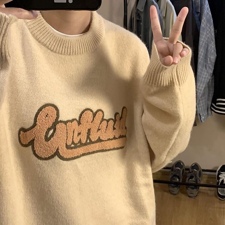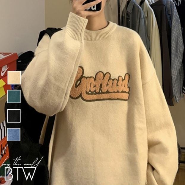 【韓国メンズファッション】ニット 刺しゅうセーター長袖 ラウンドネック オーバーサイズ カジュアル BW1948