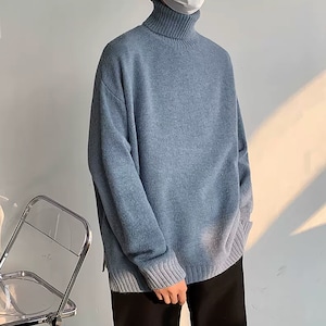 【韓国メンズファッション】トップス ニット セーター 無地 カジュアル 長袖 タートルネック おでかけ デート BW1859