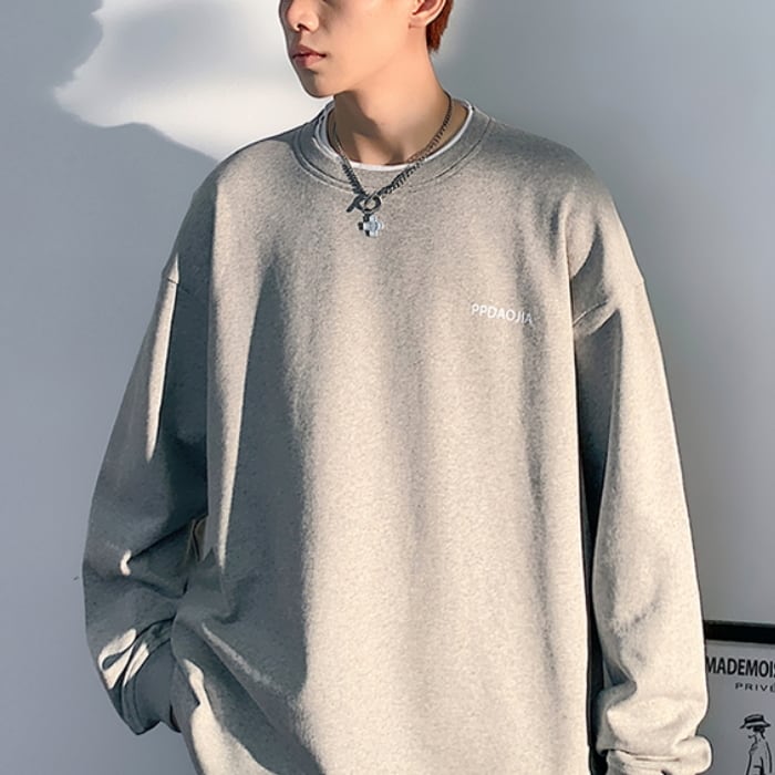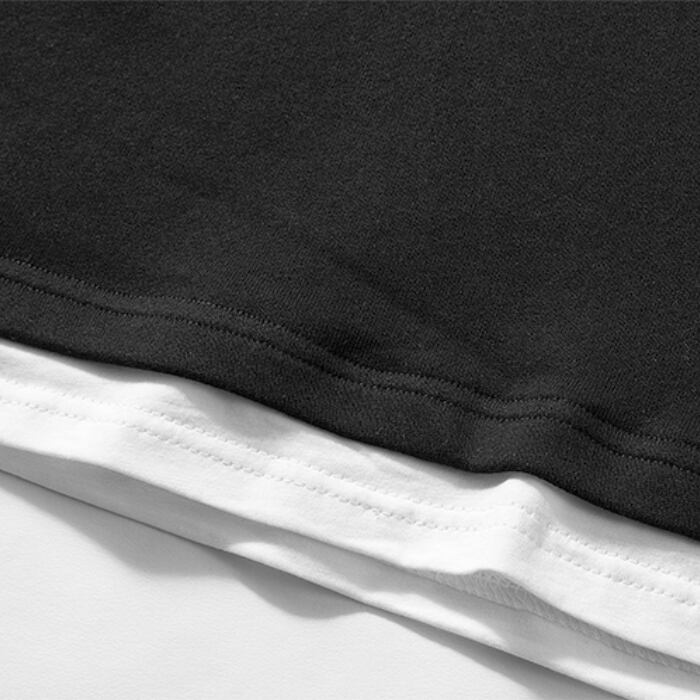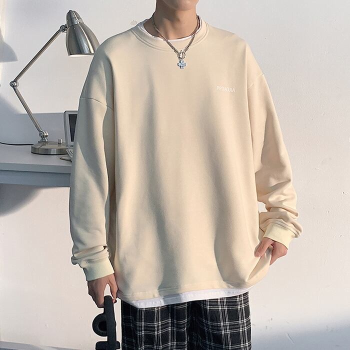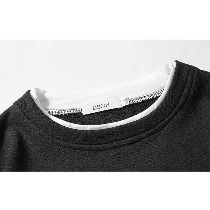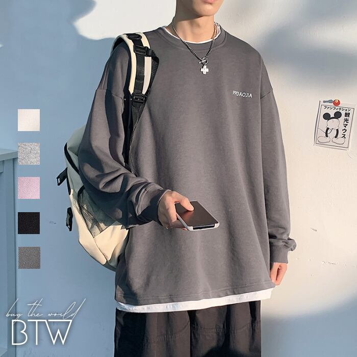 【韓国メンズファッション】トップス スウェット 無地 クルーネック 長袖 ロゴ 重ね着風 カジュアル シンプル BW1941