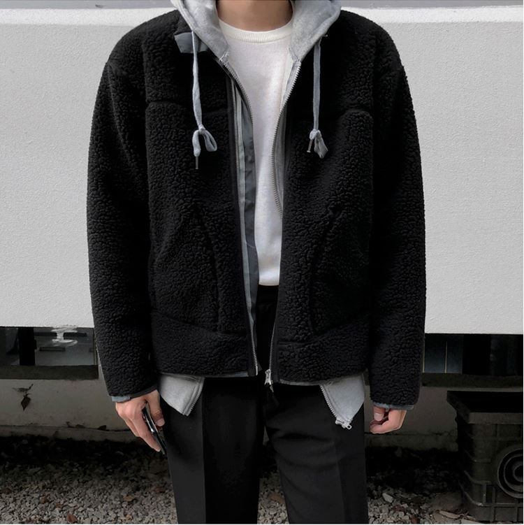 【韓国メンズファッション】ボアフリース ジャケット 長袖 無地 スタンドカラー オーバーサイズ シンプル ゆったり カジュアル BW2032