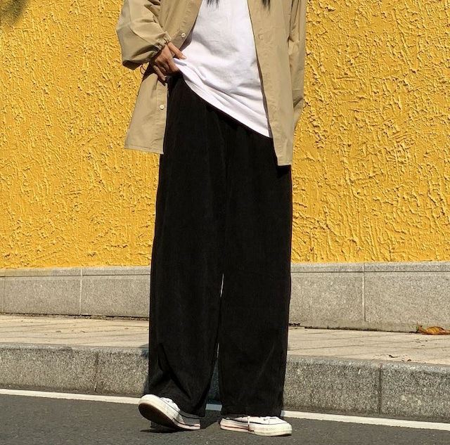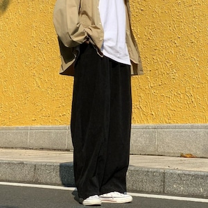 【韓国メンズファッション】コーデュロイ ワイドレッグ ストレートパンツ 無地 シンプル ゆったり カジュアルパンツ BW2068