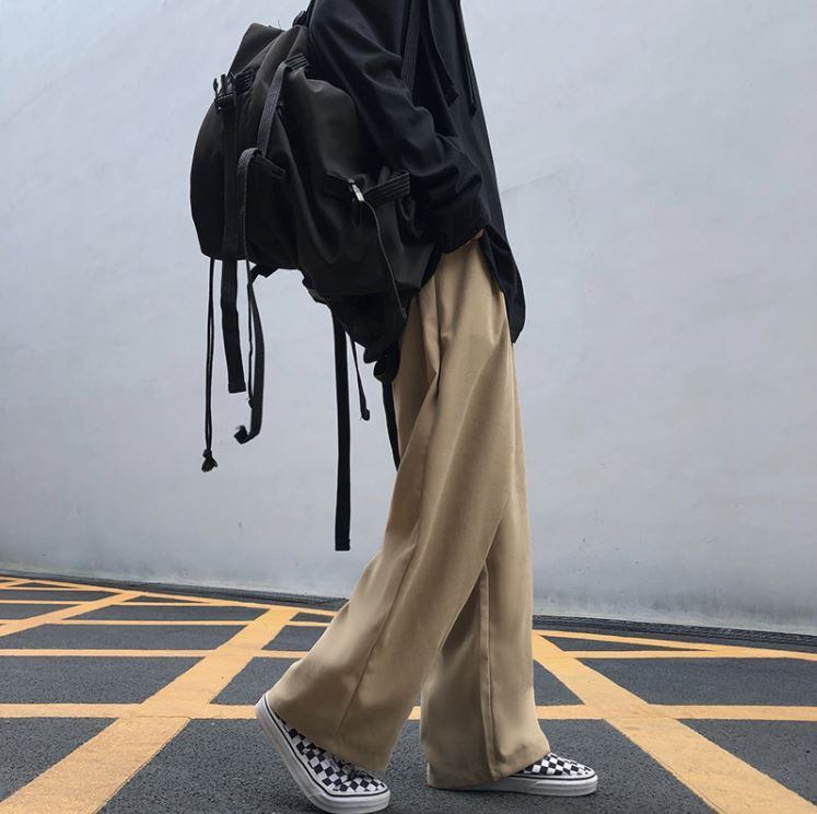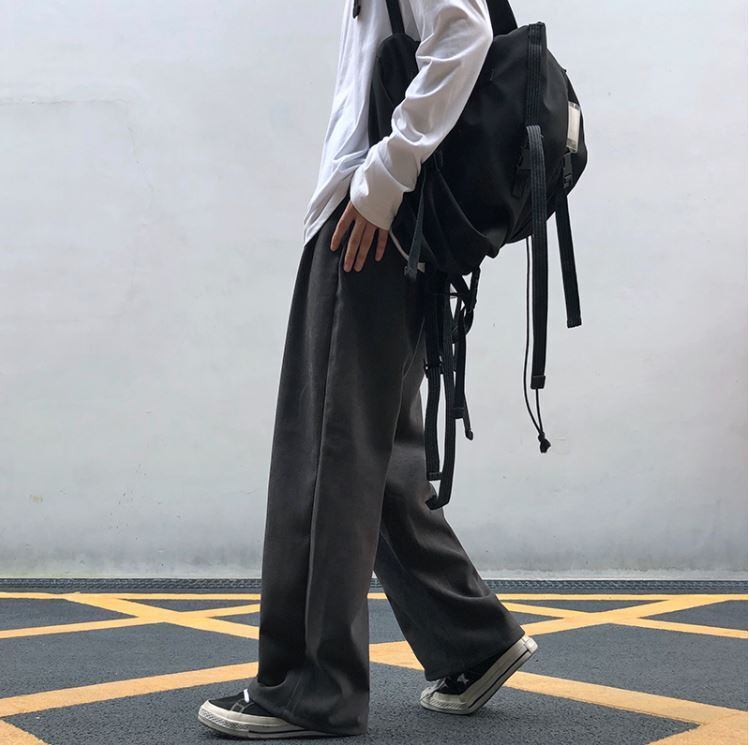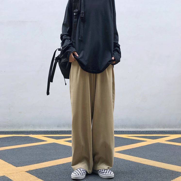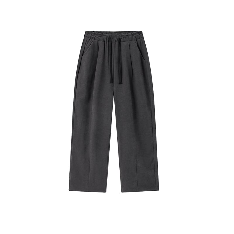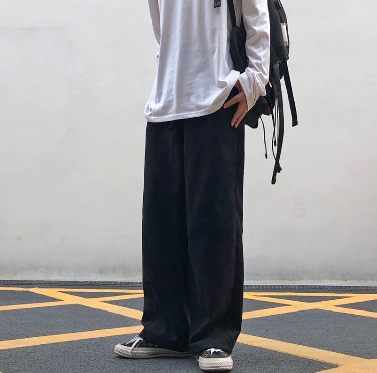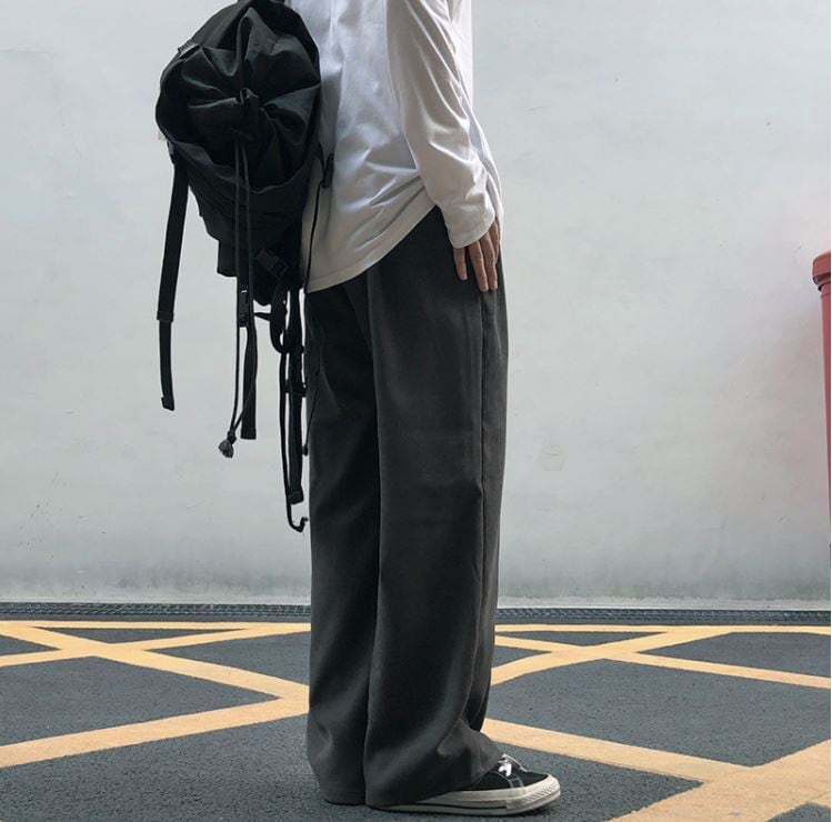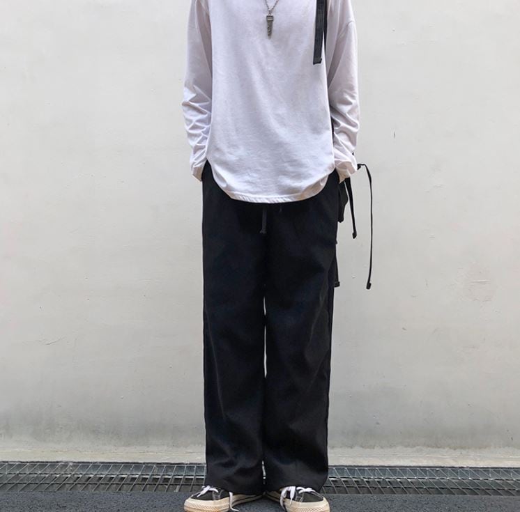 【韓国メンズファッション】ワイドレッグ ストレートパンツ ドレープ 無地 ドロストウエスト シンプル ゆったり カジュアル BW2069