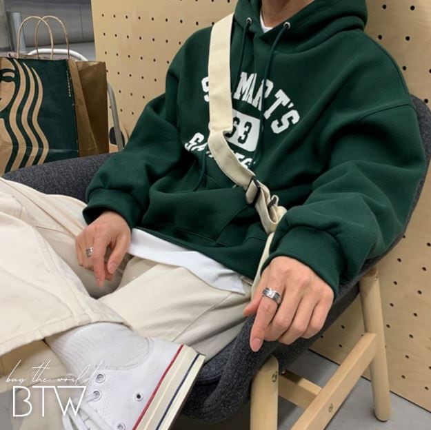【韓国メンズファッション】プルオーバーパーカー ロゴプリント 長袖 オーバーサイズ ドロップショルダー シンプル ゆったり カジュアル BW2078