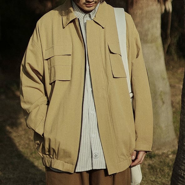 【韓国メンズファッション】人気 ツーリングジャケット ブルゾン 無地 フラップポケット シンプル ルーズ BW2079