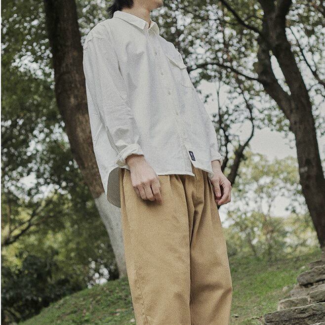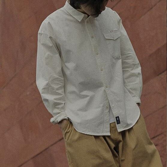 【韓国メンズファッション】レトロ 無地 テクスチャー シャツ ルーズ 長袖 シンプル ゆったり カジュアル BW2085