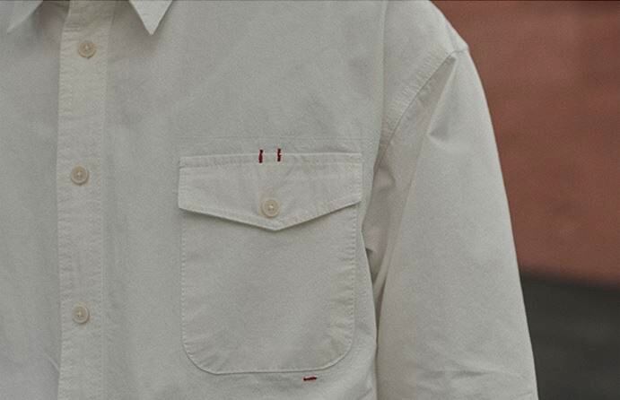 極めてベーシックなディテール使いで構成されるテクスチャー シャツ。