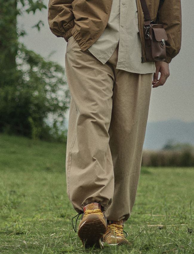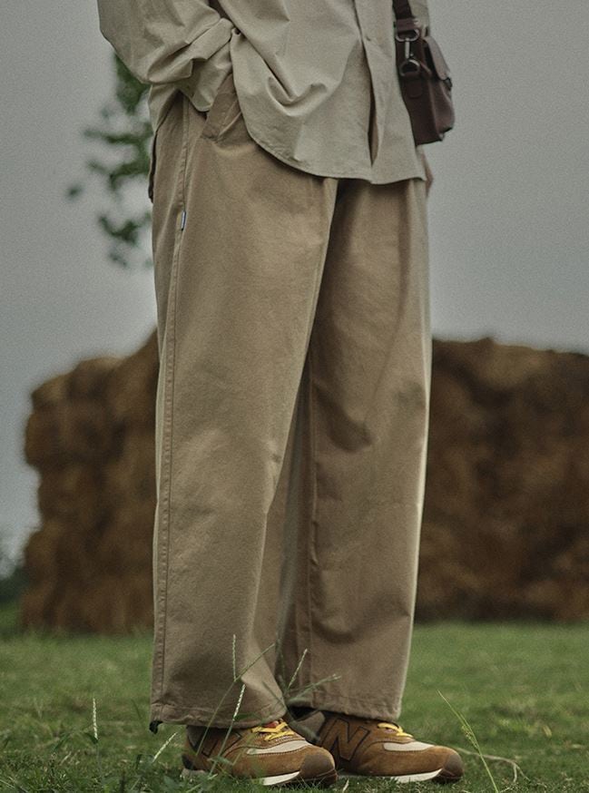【韓国メンズファッション】ストレート カジュアルパンツ ドローコード ウォッシュド 無地 ルーズ BW2091