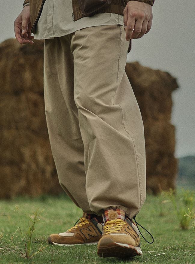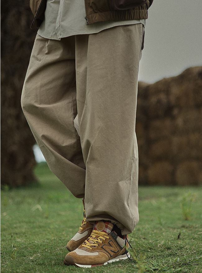 トレンドのゆったりしたシルエットの無地カジュアルパンツ。
