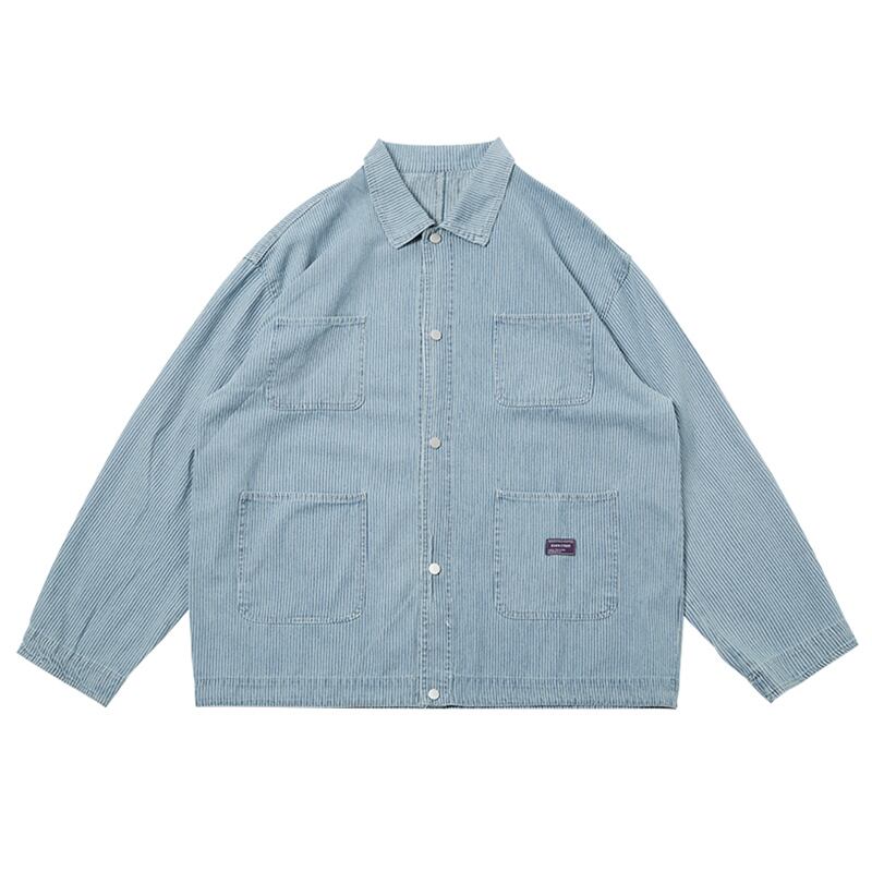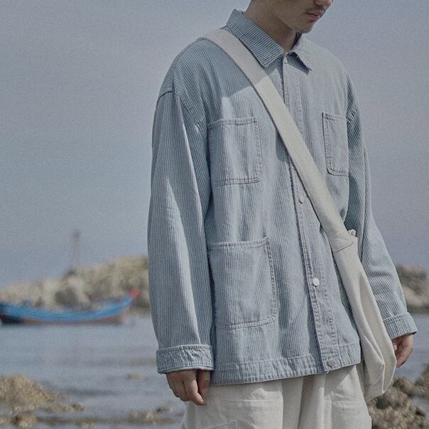 トレンドのゆったりしたシルエットのストライプシャツジャケット。