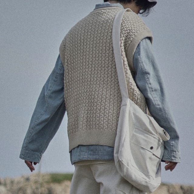 シンプルな中に、ケーブル編柄がオシャレなニットベスト。