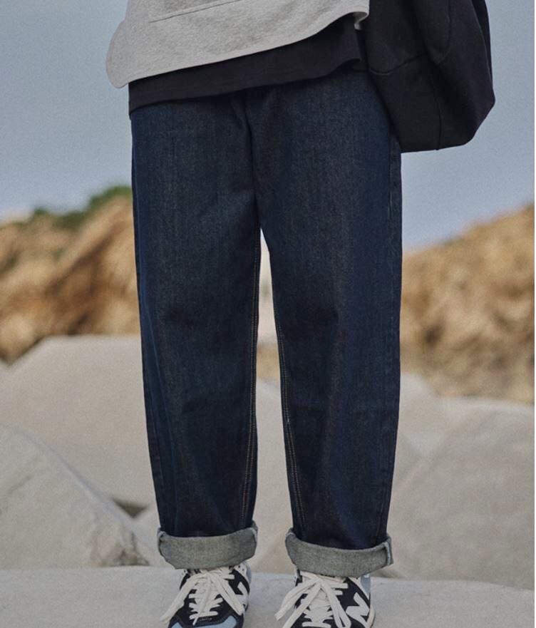 【韓国メンズファッション】デニム ウォッシュド ワイドレッグ ジーンズ 無地 ストレート ユニセックス BW2097