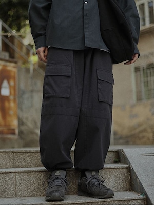 1本持っているとグッと大人のスタイリングになるゆったりしたマルチポケットパンツ。