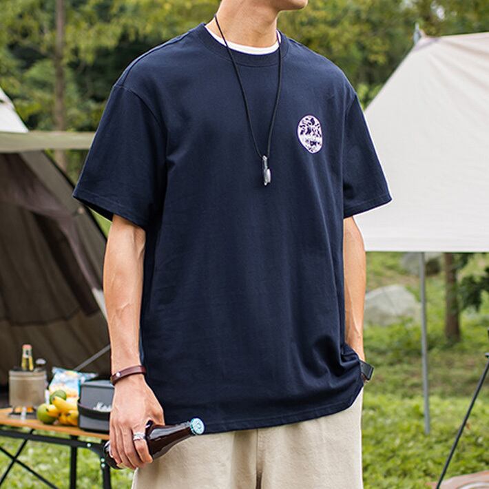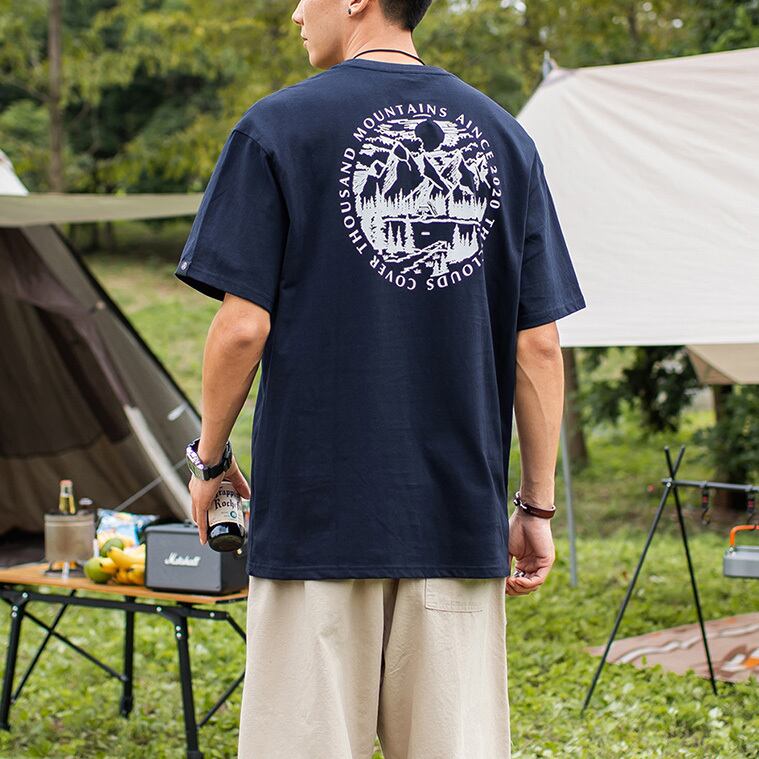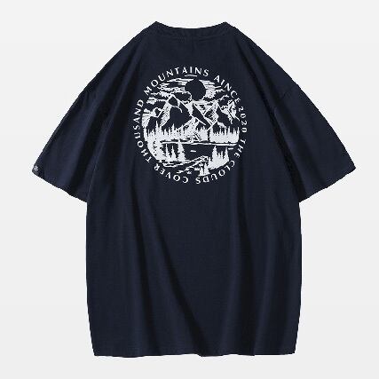 【韓国メンズファッション】バックプリントTシャツ 半袖 ゆったり アウトドア ベーシック ユニセックス BW2140