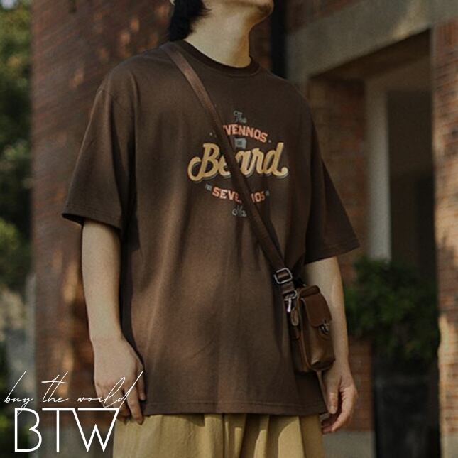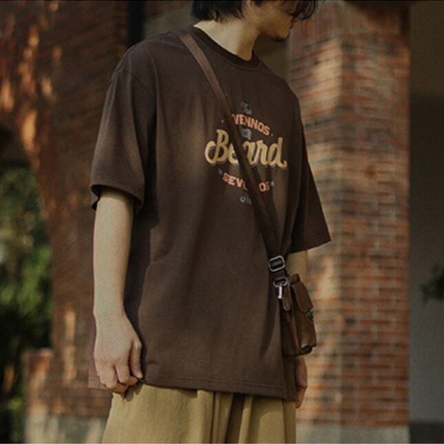 【韓国メンズファッション】フロントロゴプリントTシャツ 半袖 ゆったり アメカジ カジュアル BW2149