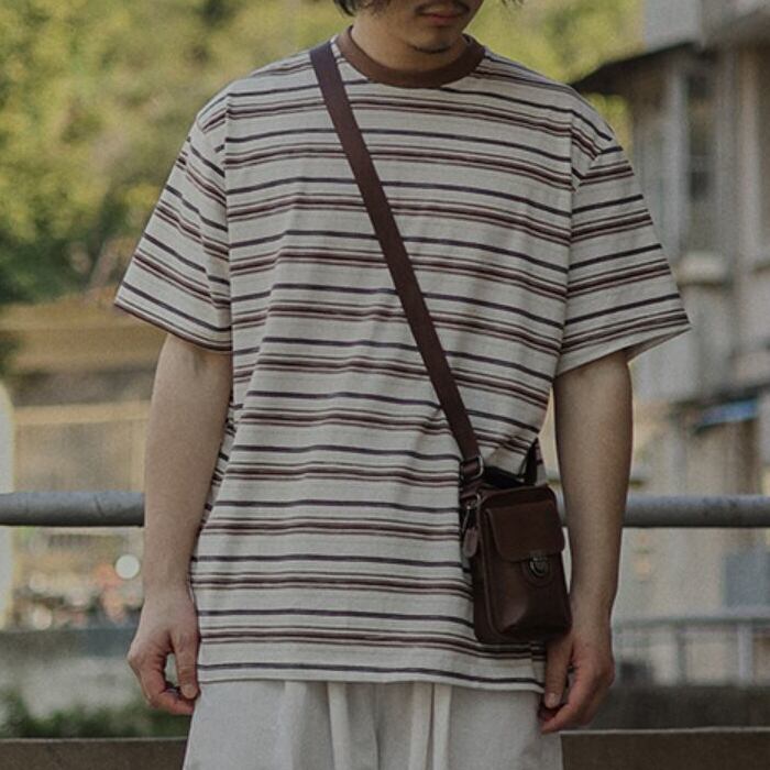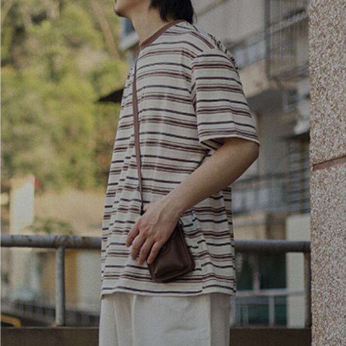 【韓国メンズファッション】ボーダーTシャツ 半袖 アースカラー シンプル カジュアル BW2159
