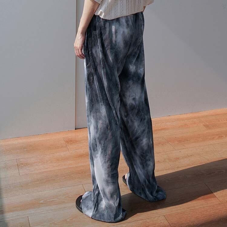 タイダイ染めのようなプリントが個性的なロングパンツ。ウエストゴムでゆったり履けるので気軽な休日コーデにぴったり。シンプルなTシャツと合わせるだけでおしゃれに決まります!