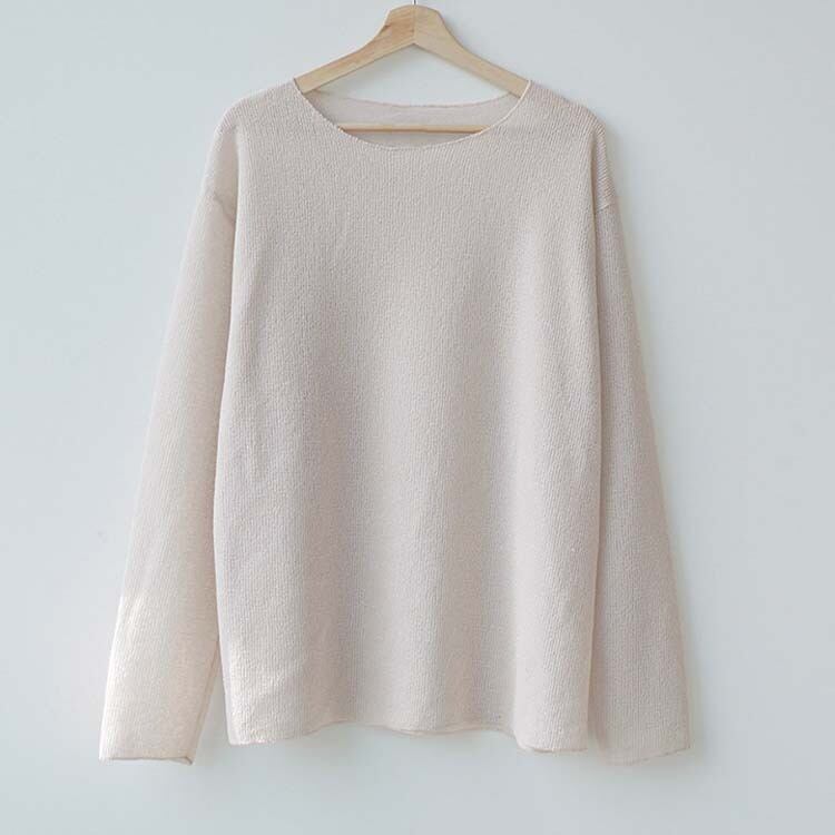 透け感のある薄手のサマーニット素材がおしゃれなロンT。余計なものがないとてもシンプルなデザインでミニマルファッションにも使いやすいアイテム。