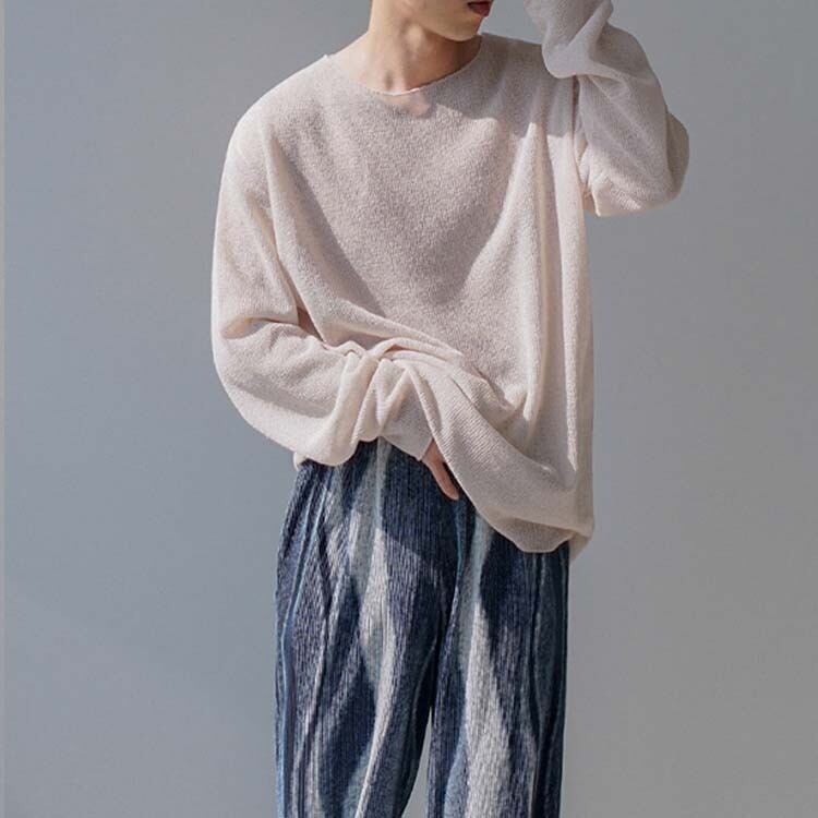 【韓国メンズファッション】サマーニット長袖Tシャツ ロンT ゆったり 透け感 シンプル ミニマル BW2168
