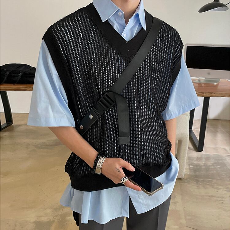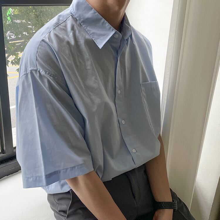 【韓国メンズファッション】ドロップスリーブオーバーサイズシャツ 半袖 ゆったり シンプル カジュアル BW2175