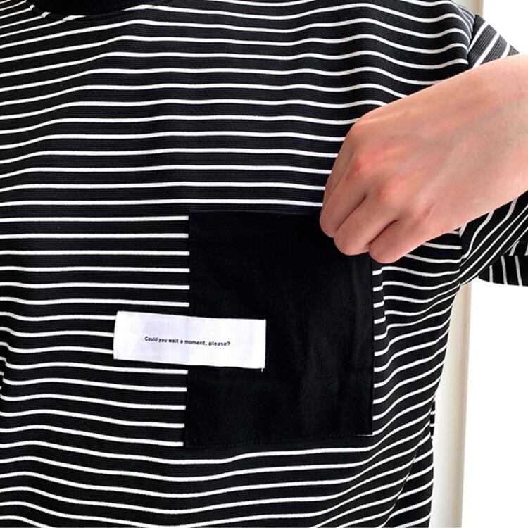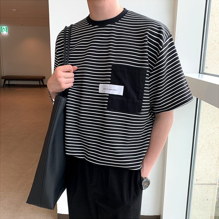 【韓国メンズファッション】パッチポケットボーダーTシャツ 半袖 シンプル カジュアル BW2176