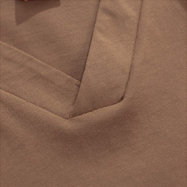 太めのリブ幅のVネックが都会的な印象で清潔感があります。