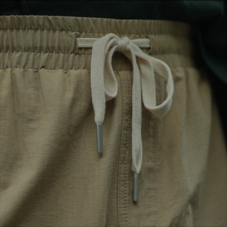 ウエストは紐で簡単に調節でき、脱ぎ履きも楽なのがポイント。