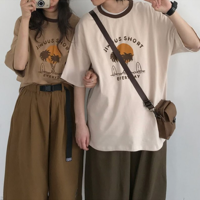 【韓国メンズファッション】ロゴプリント半袖Tシャツ シンプル カジュアル ゆったり ユニセックス BW2187